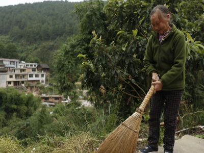 圖片說明:貴州貴陽苗族日常生活-打掃院落
